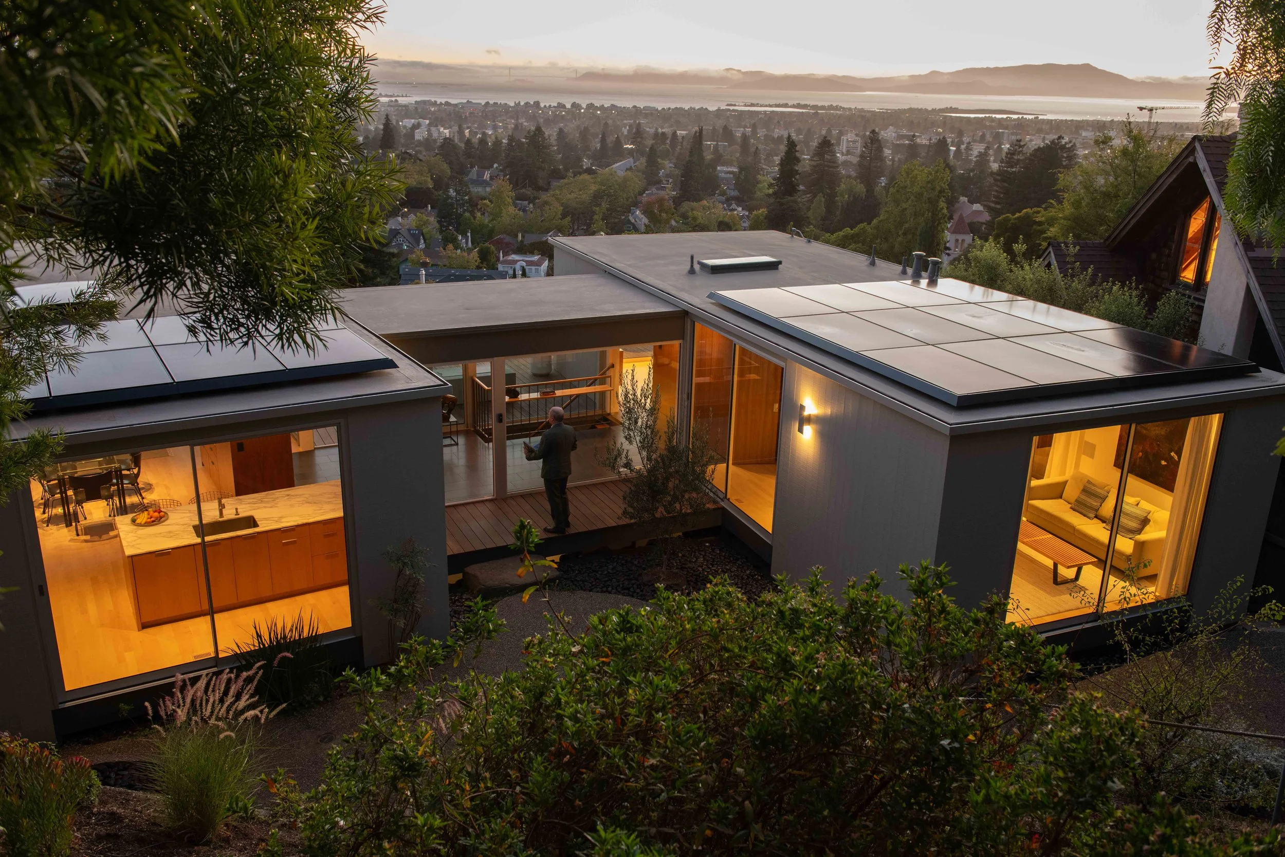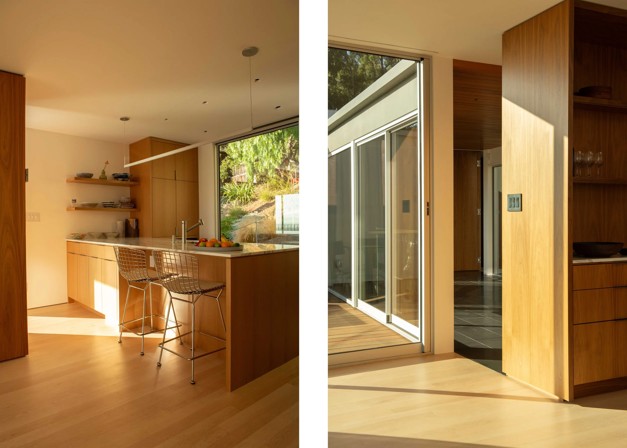 Returning to his childhood home many decades later, our client sought to restore and renew this midcentury modern in a way that both honored and reinvigorated the original architectural legacy. Designed in 1955 by his father, Berkeley architect Jack Robbins, the home consists of two pavilions connected by a glass bridge with sweeping views of the San Francisco Bay.